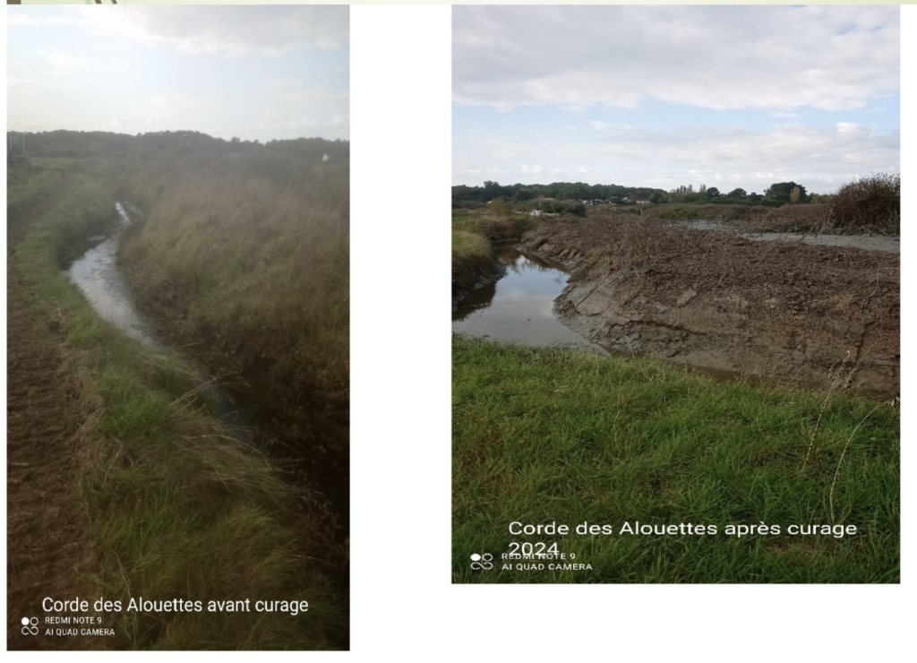 Durant cette année 2024, des travaux de curage ont été réalisés par l’ASMG Dans le marais nord : – Gobinière