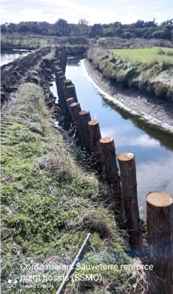 Travaux réalisés par le SSMO dans le marais sud : renforcement de berge Corde de Sauveterre